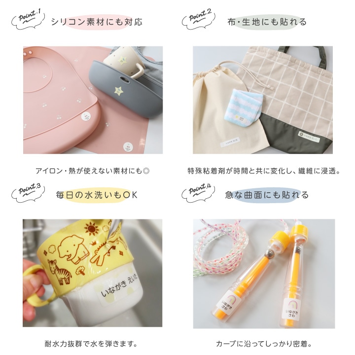 | アイロン不要で手間いらずなお名前シール登場。 特殊な強力接着剤であらゆる素材にも対応。 プラスチックはもちろん布やシリコンにも◎ 耐水耐熱で機能性も抜群。 貼り方も簡単だから忙しいママにもお勧め。 お洒落なデザインで入園入学準備も楽しめます。 デザインは、全20種類ご用意。 ------------------------------------------------------------------------------ 01.きょうりゅう 02.さめ 03.クマさん 04.アイス 05.でんしゃ 06.くるま 07.ドーナツ 08.にじ 09.キイロドット 10.キイロスター 11.ユニコーン 12.うさぎ 13.おはな 14.チューリップ 15.さくらんぼ 16.たんぽぽ 17.いちご 18.パンケーキ 19.ピンクドット 20.ピンクスター ------------------------------------------------------------------------------ 【印字内容について】 当商品ページに入力欄がございます。 印刷するお名前は、そちらへご入力下さい。 ※フルネームの場合、名字と名前の間に半角スペースが入ります。 ※表記するお名前は、ひらがな・漢字・ローマ字・数字が対応しています。 旧字の場合は、備考欄にてご指示ください。 例:高橋の高ははしごだかでお願いします。 ■国内自社製造 国内の自社工場で製造だから安心。 製造から梱包まで1つ1つ丁寧に行っています。 |